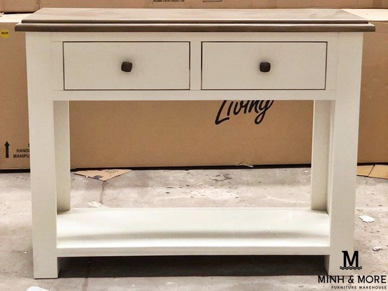 BÀN CONSOLE TRANG TRÍ GỖ THÔNG MÀU TRẮNG KEM HANDLE