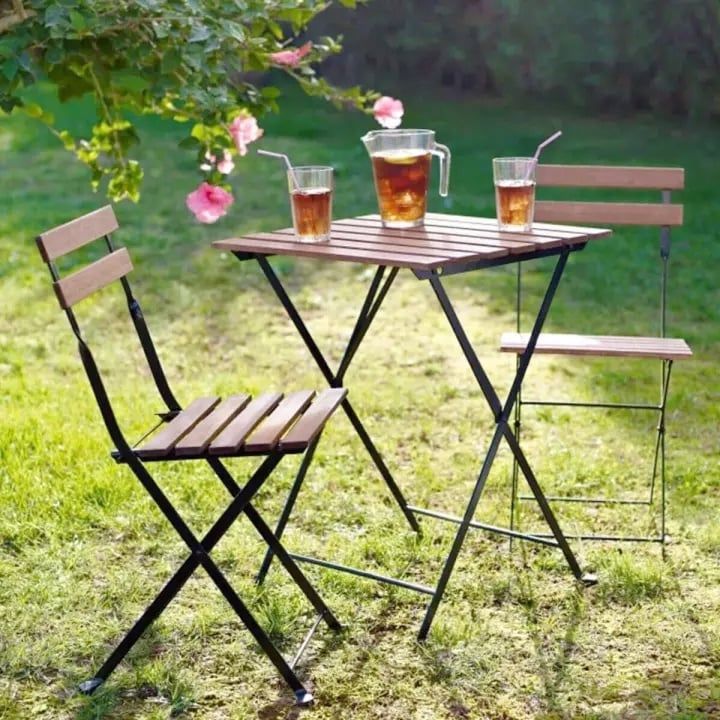 - Sắt bền bỉ, mỹ thuật, kết hợp gỗ thanh tinh tế, có thể xếp gọn khi cần