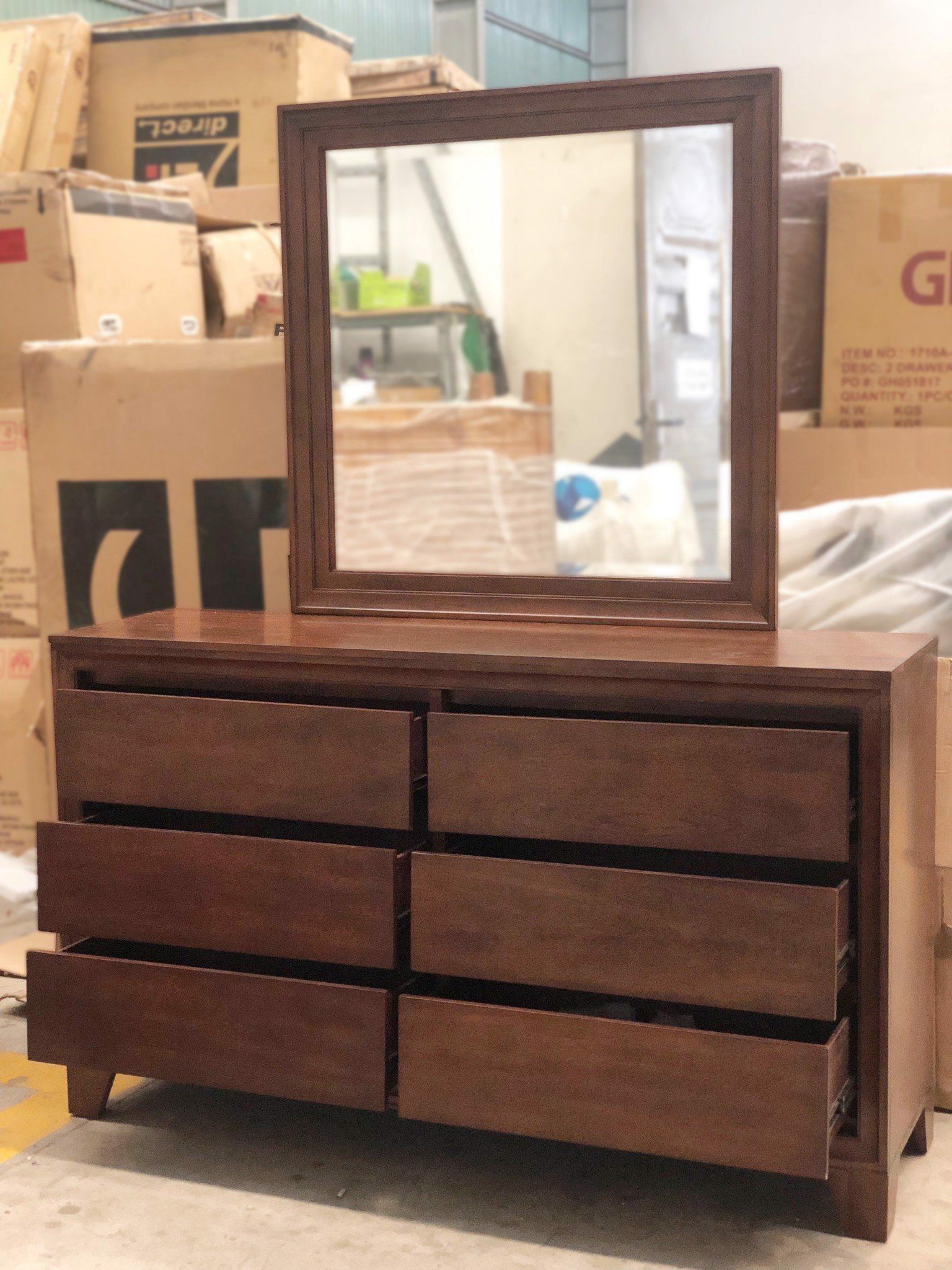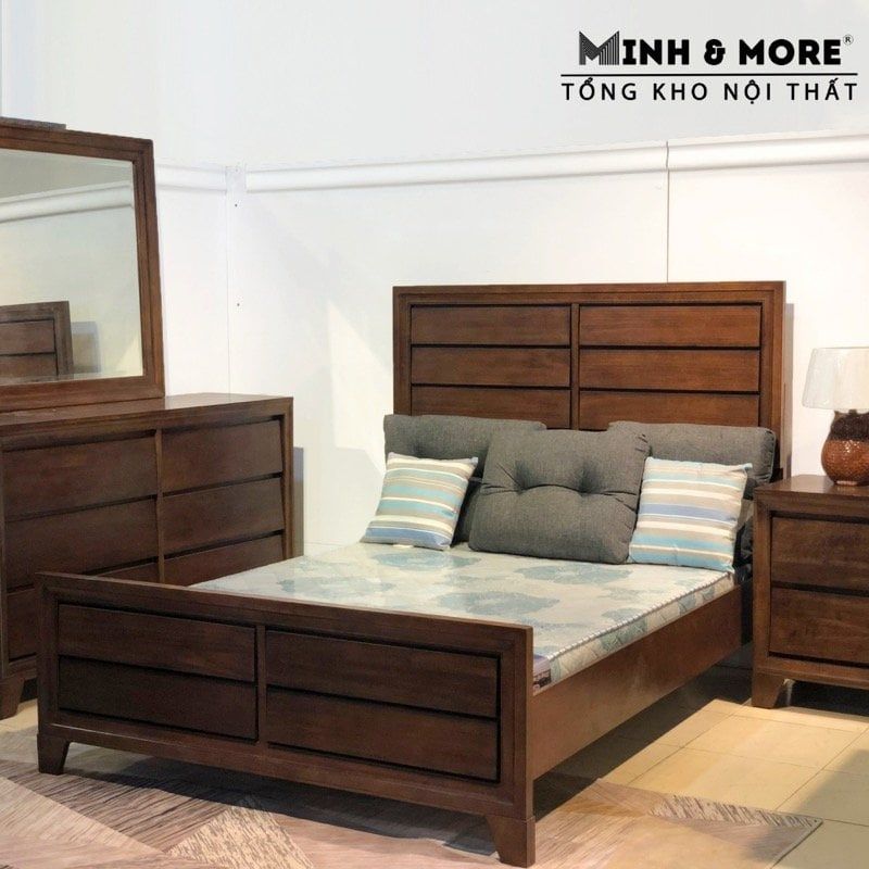 - 1 bộ gồm: giường + tủ đầu giường + tủ hộc + gương
