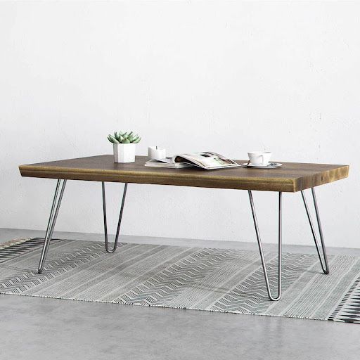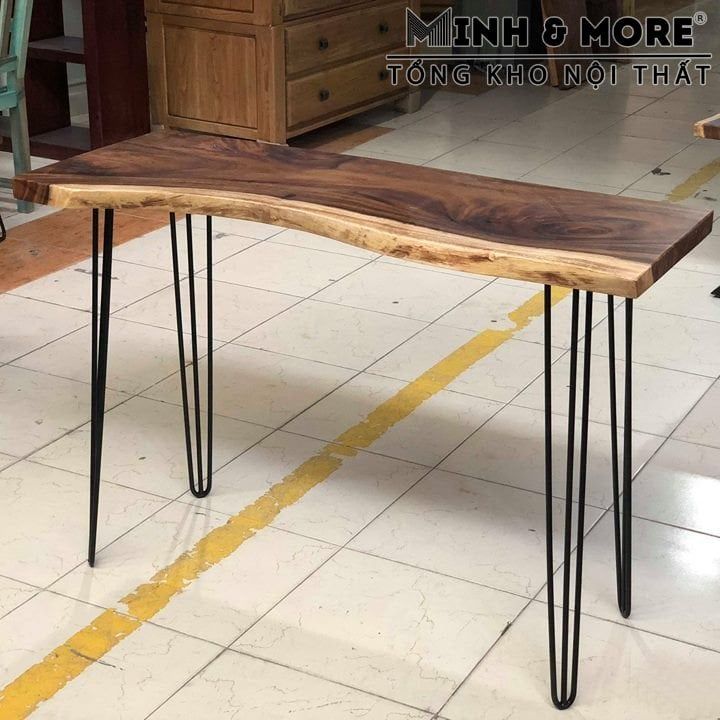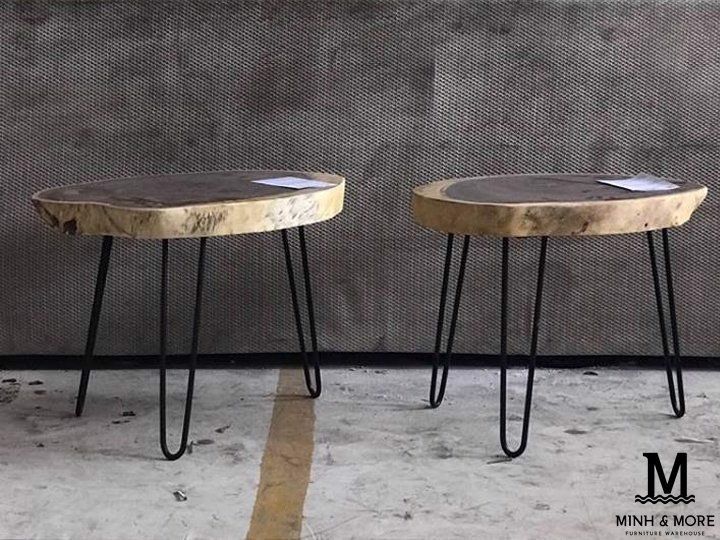 thường kết hợp với mặt bàn gỗ tự nhiên nguyên khối bằng thân cây tạo nên phong cách mộc mạc rustic