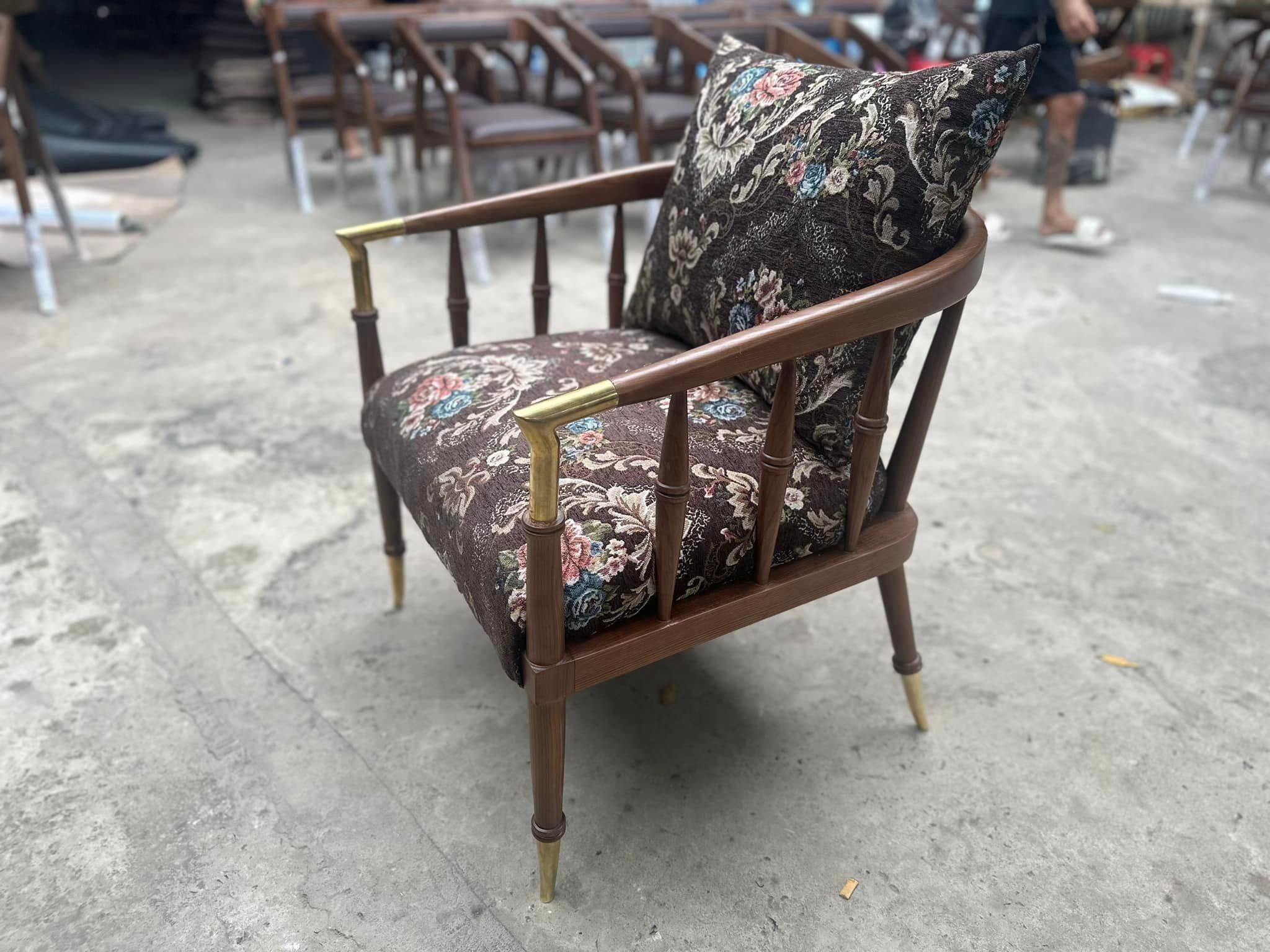 Khung gỗ ash, chân và tay bọc đồng nguyên chất.