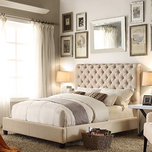 - Giường ngủ bọc nệm được lấy cảm hứng từ tone màu gạo beige / xám grey / than đá charcoal dễ phối với mọi tông màu tường