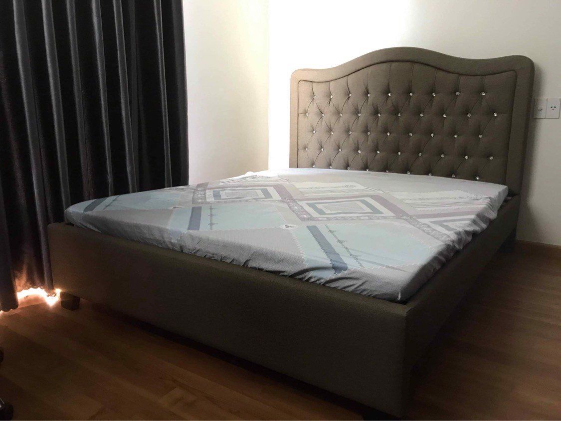 Giường bọc nệm, vải nhung, có hộc đựng đồ