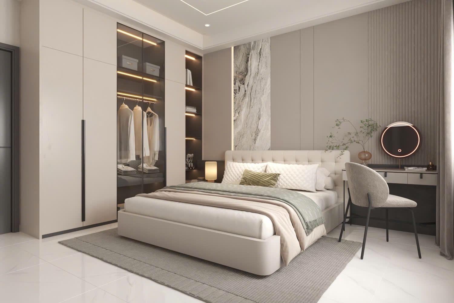 Giường bọc nệm khung gỗ sồi, nệm bọc màu tuỳ chọn