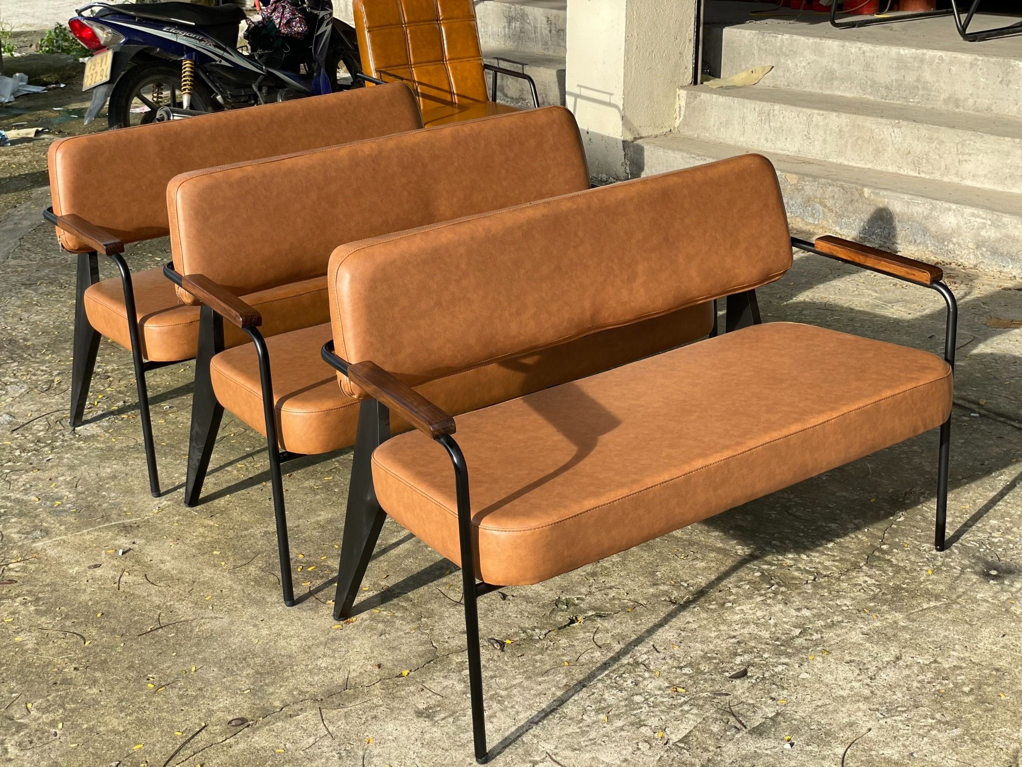 Ghế Sofa Napa được tạo điểm nhấn ở phần lưng tựa với hai thanh sắt dập bản lớn làm nhiệm vụ trang trí tạo điểm nhấn và chịu toàn bộ phần lớn sức nặng người sử dụng. phần tay vịn thanh mảnh kết hợp với tay gỗ thông trang trí thô mộc theo hướng Vintage, lưng tựa và mê ngồi bọc đệm simili hoặc vãi bố màu sắc đa dạng.